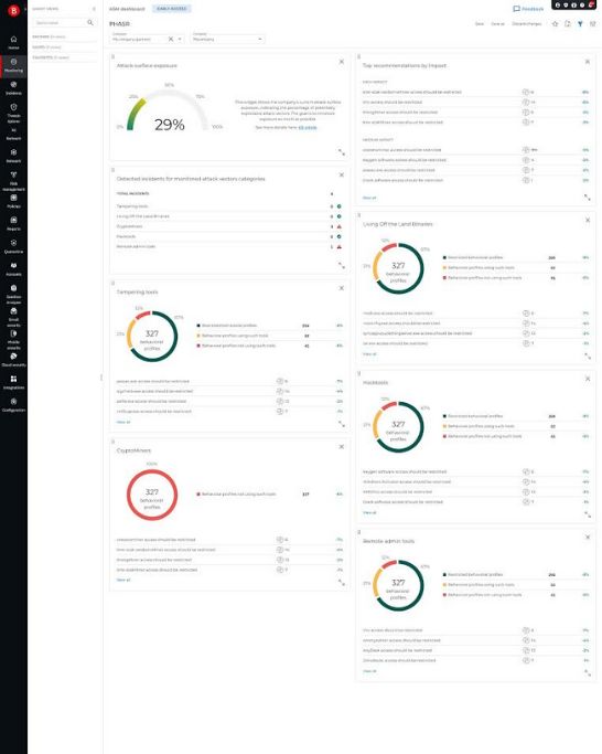 - Drastically reduces attack surfaces and alert fatigue – GravityZone PHASR correlates user behaviour with live threat intelligence and known attack vectors to define the optimal security configuration for each individual—shrinking the attack surface without compromising performance. Its precision reduces unnecessary alerts, helping lean security teams operate more efficiently while delivering fast, high-impact risk reduction with minimal effort.